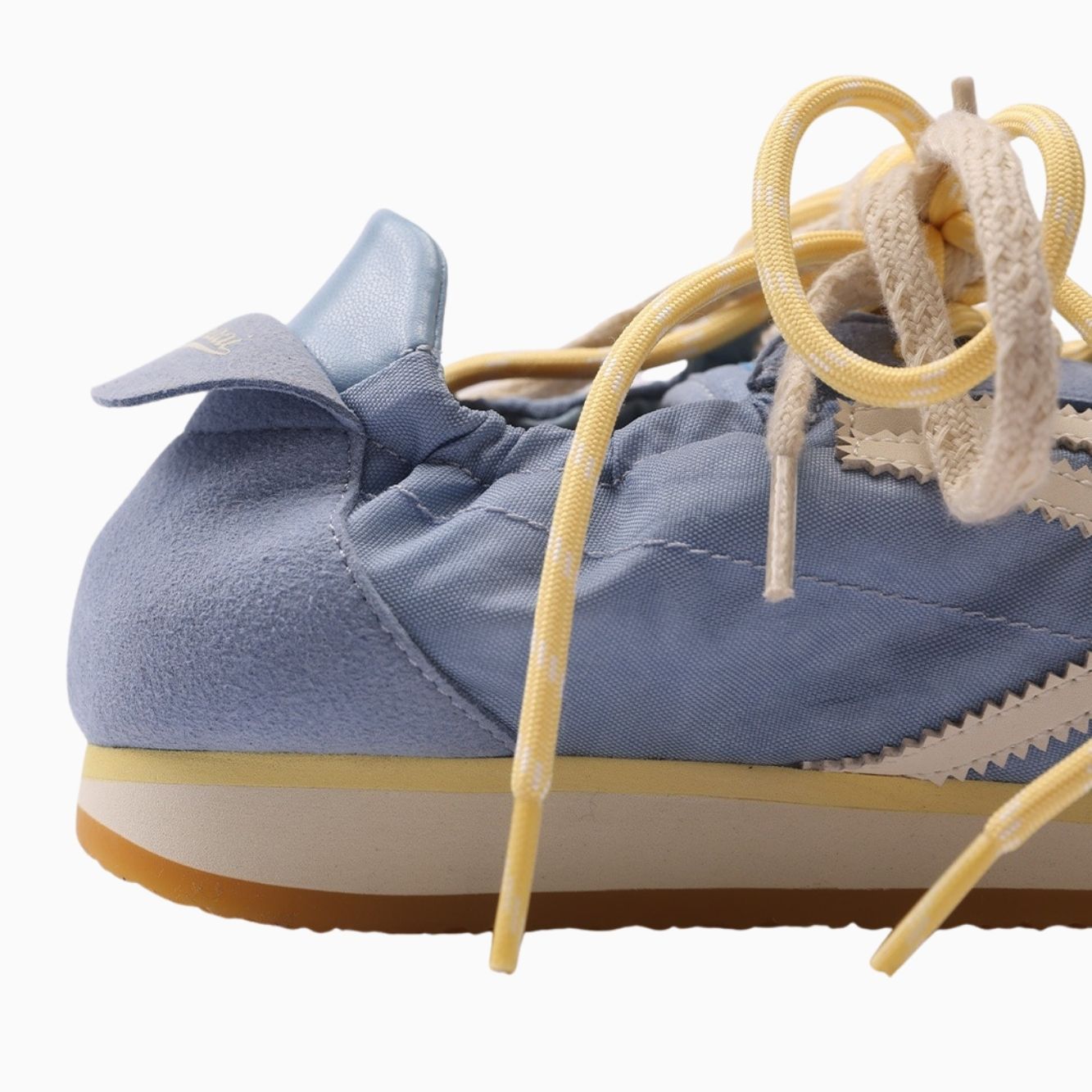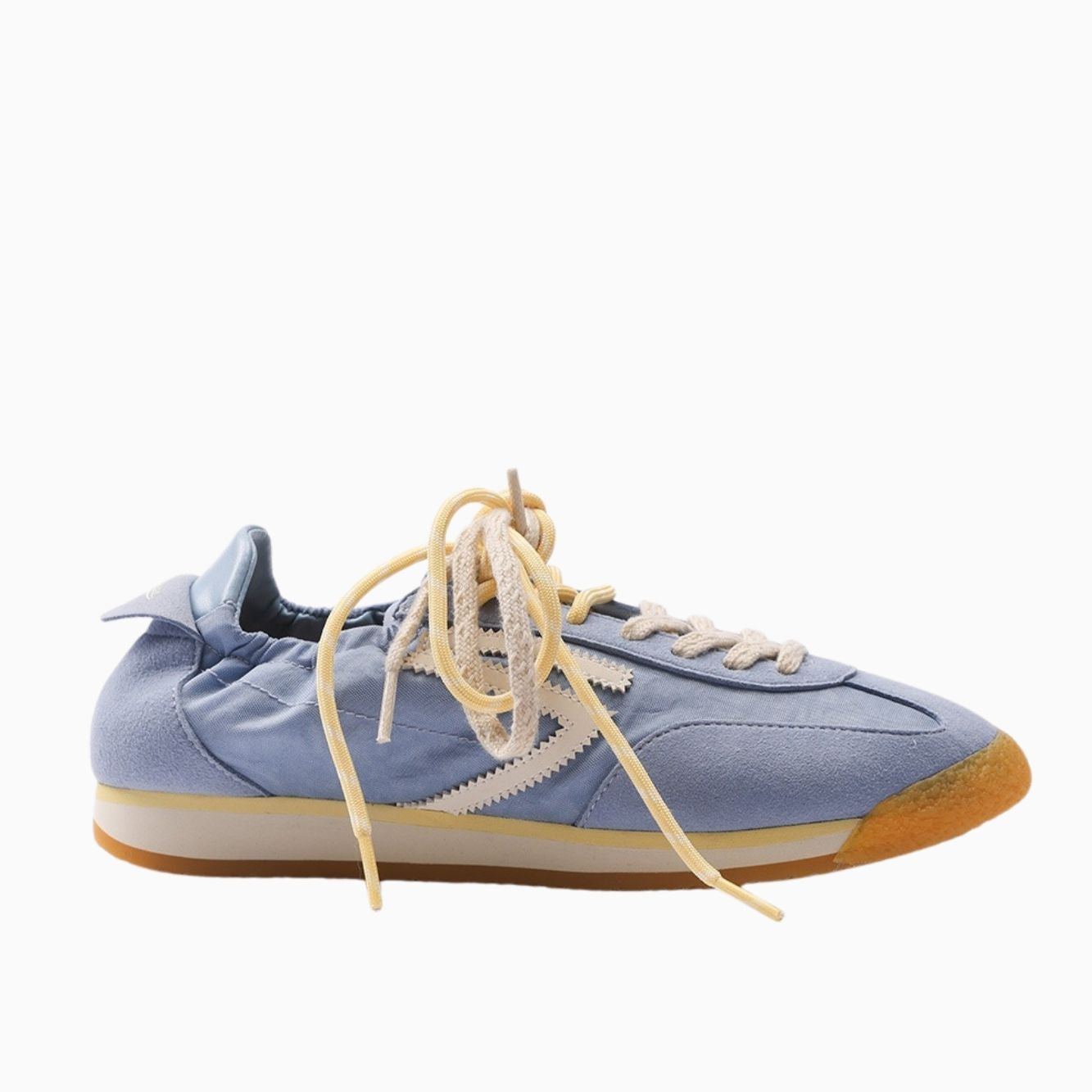 Suola gialla, beige chiaro e color miele, lacci doppi gialli e beige chiaro.